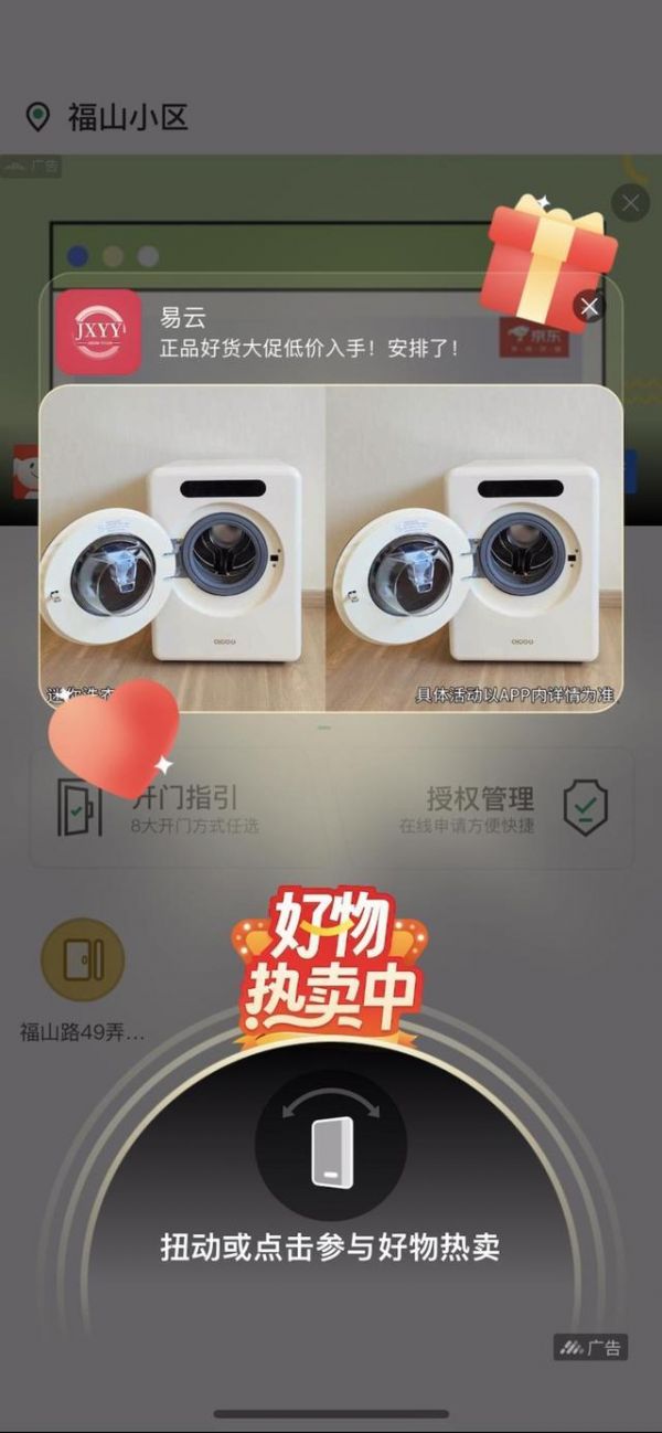 “小区新换门禁系统后,我就下了开门的App,每次打开都会弹出‘摇一摇’广告,手微微一动就跳转到购物平台了。”近日,解放日报·上观新闻“民声直通车”后台,杨女士(化名)留言倾诉了自己的苦恼。