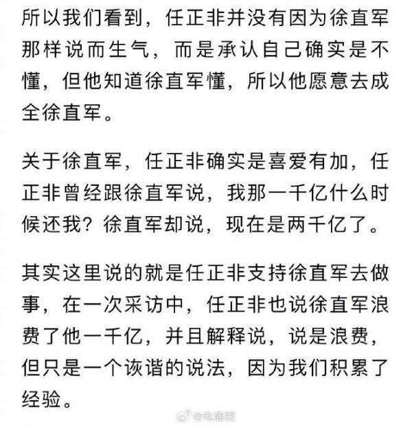 任正非跟客人聊天,华为董事徐直军突然插话:老任懂什么,任总笑了。