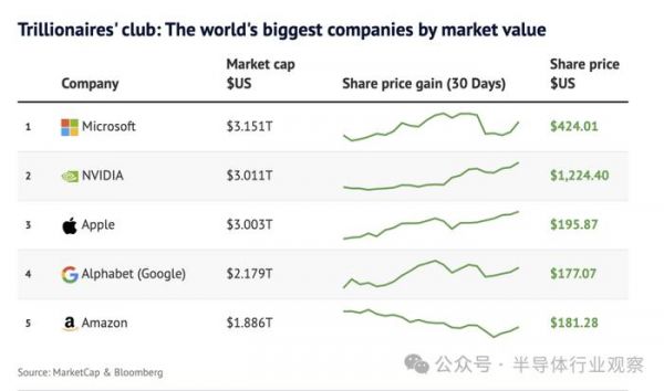 这家总部位于圣克拉拉的 GPU 制造商最近市值达到3.011 万亿美元,与苹果和微软一起进入了“3 万亿美元”俱乐部。Nvidia 上次市值超过 Apple 是在 2002 年,也就是第一款 iPhone 发布的五年前。当时,两家公司的市值均不足 100 亿美元。但现在,由于对 AI 芯片的无限需求,预计 Nvidia 最终将超越微软,成为全球最有价值的公司。
