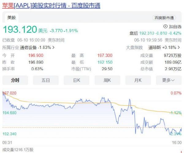 跌幅其实不算大,只有1.91%,如果算上盘后跌的0.42%,加一起也就2.33%,对于苹果来说其实还好。