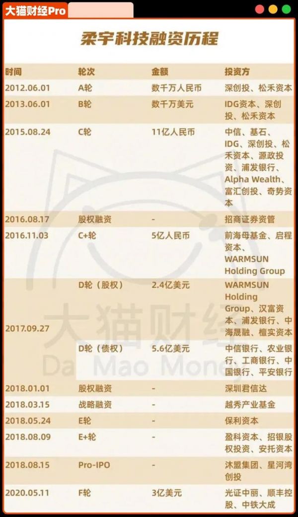 但徐小平没看上的刘自鸿发展更快,2012年之后,柔宇融资拿到手软,金额加起来近100亿。