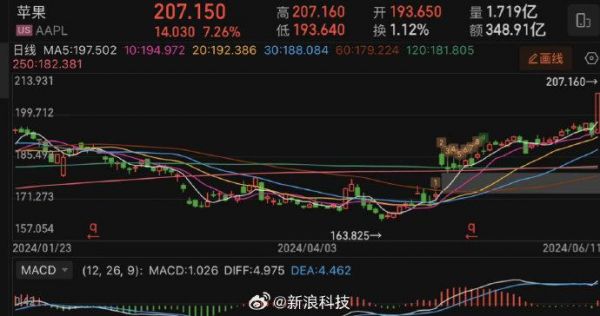 【#苹果市值一夜增2142亿美元#,股价大涨超7%创历史新高】在 WWDC24 主题演讲以及全新人工智能“Apple Intelligence”亮相后的一天,苹果股价飙升至历史新高。截至周二收盘,苹果股价达 207.15 美元,涨 7.26%,股价创历史新高,市值一夜大增 2142 亿美元,总市值达 3.176 万亿美元(当前约 23.05 万亿元人民币),并拿下消费电子巨头今年的第一个历史新高。