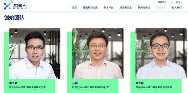 公司身后,是三位80后物理学家——温书豪、马健和赖力鹏。2015年,他们从麻省理工结伴回到国内,在深圳创办晶泰科技,一家以人工智能和机器人驱动的创新研发平台。成立至今,晶泰科技是AI制药领域融资金额最大的明星项目,一路走来累计融资超50亿元人民币,集结了一支豪华的投资人队伍。