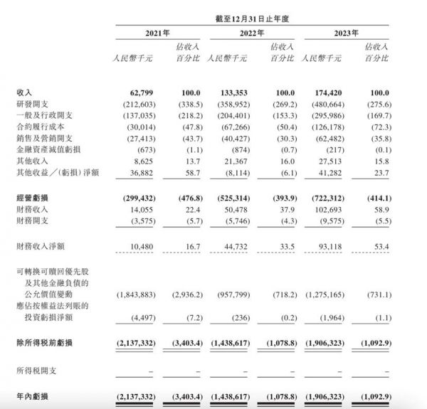 营收方面,晶泰科技2021—2023年的收入分别为6280万元、1.33亿元、1.74亿元,呈逐年上升趋势。但AI制药公司的商业化挑战,同样摆在晶泰科技面前:经调整亏损分别为2.71亿元、4.37亿元、5.22亿元,合计亏损12.3亿元。晶泰科技将此主要归因于与研发活动相关的成本以及与营运相关的一般及行政开支。