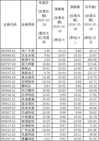 行情到了10月30日,区块链指数下跌2.85%。仅有8只个股收涨停,包括智度股份(000676)、海联金汇(002537)、易见股份(600093)、新湖中宝(600208)、数字认证(300579)、飞天诚信(300386)、文化长城(300089)、浙大网新(600797)。