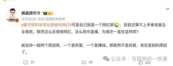 有人甚至认为,董宇辉自视过高,看不起其他网红。然而,也有不少网友支持他的观点,认为“网红”一词已逐渐贬义化,董宇辉更像是一个正能量的“文化传播者”。