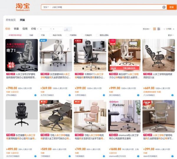笔者检索各大电商平台发现,市面上的人体工学椅价格从几百到上万各个价位都有,除了国外知名品牌如赫曼米勒、冈村,国内老牌办公椅厂商如网易严选、西昊、永艺等也积极参与市场竞争。