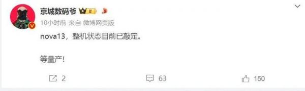 根据博主京城数码爷的最新爆料,华为nova13系列整机状态目前已经敲定,等量产!虽然目前暂时不知道量产已经到了哪个阶段,这几天华为官方可能会站出来发布相关消息。