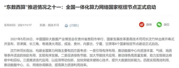 下图是我在发改委官网找的,2021年5月26日,国家发改委高技术司司长就在贵阳正式宣布八大国家算力枢纽节点建设正式启动,这个时间到今天已经三年以上了。