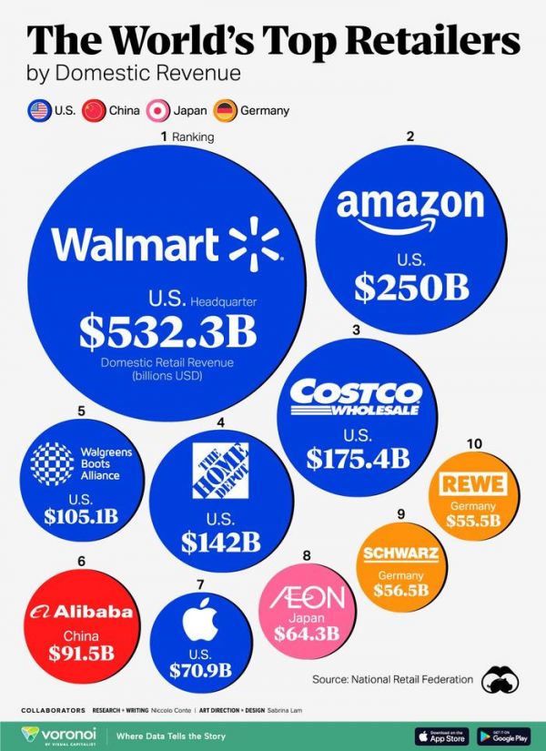 图解|全球十大零售巨头:沃尔玛遥遥领先