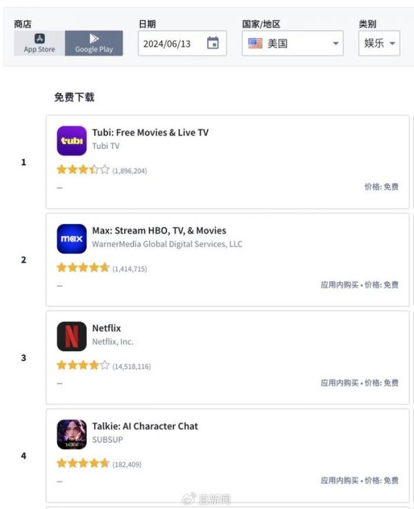 人工智能(AI)正日益成为推动各行各业创新的核心力量。近期,中国生成式AI应用在海外市场引起了关注。市场分析机构Sensor Tower数据显示,自5月21日以来,国内AI独角兽企业MiniMax开发的AI虚拟人物聊天软件Talkie在美国区Google Play下载排行榜上持续位列前六名。