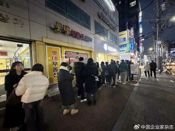 1月27日,首店开业第2天,韩国晚上7点多,零下10度,首尔江南区的街道上,裹着标志性黑色长羽绒服的韩国人们排起了近100米的长队。队伍排在人行道内,遮住了十几家不动产、银行等各类店铺的大门,人们在寒风中呼着白气,时不时往前跟着队伍挪动脚步,排上1~2个小时就能买到一杯茶百道了。