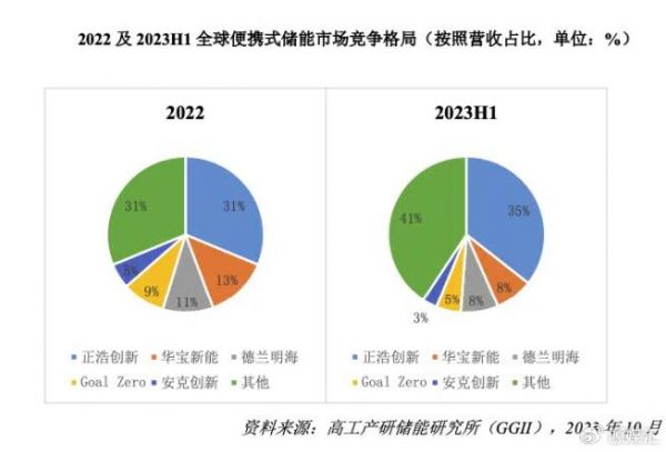 而储能业务同样不容乐观。高工产研数据显示,2023年上半年,全球便携储能市占率前五的厂商排名为:正浩创新占比35%、华宝新能(301327.SZ)占比8%、德兰明海占比8%、Goal Zero占比5%、安克创新(300866.SZ)占比3%。前五名的市占率总和达到59%,几乎抢走一半以上市场,头部效应明显。