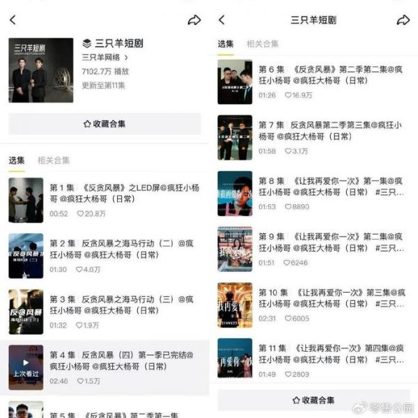 事实上,2023年底,三只羊网络就已经推出短剧专题。目前上线的两部短剧分别是《反贪风暴》和《让我再爱你一次》。