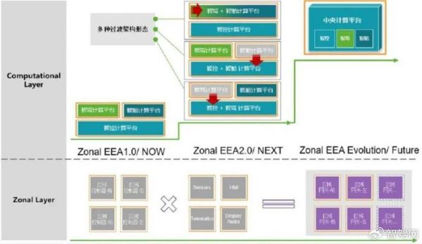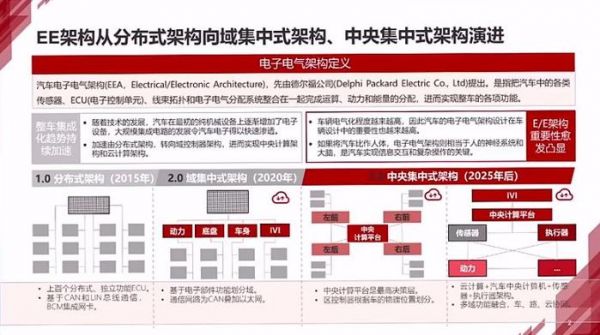 目前,市场正处于从过去的分布式EE架构迈向域集中式EE架构的转变过程中,预计到2025年,将彻底开启中央+区域计算的EE架构时代。