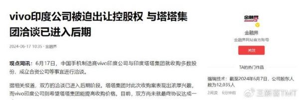 这意味着一旦交易完成,那塔塔集团将成为真正的第一大股东,掌握话语权。Vivo在印度的业务就是印度公司了,vivo子公司未来的经营与决策,印度人说了算。