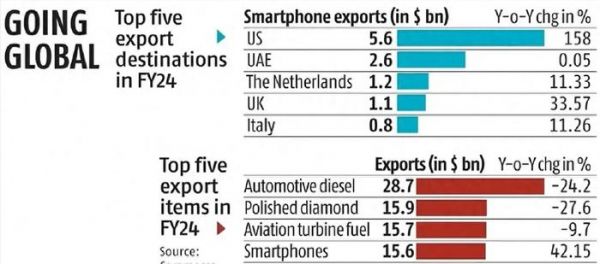 值得注意的是,印度手机产业已经壮大起来,印度《经济时报》5月23日报道, 2023-24财年(印度财年到Q1)印度智能手机出口高达达156亿美元、增长同比42%,一跃成为印第四大出口产品。