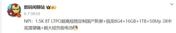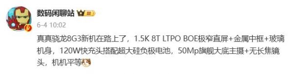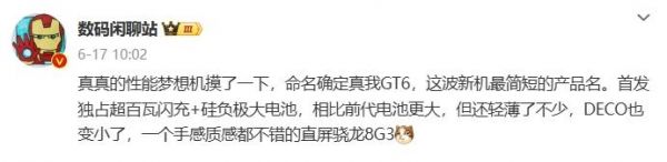 除了真我GT6外,数码博主@数码闲聊站 还提到过真我GT7 Pro的信息。