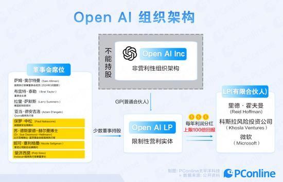 同时,奥尔特曼还拉来了众多LP(有限合伙人)进行投资,微软就是其中一员。借助公司营利的属性,有限合伙人可以获得每年的利润分红。而这里的“有限”指的是OpenAI的分红只有上限100倍的回报。也就是说,赚的钱是有定额的,达到了之后就不能继续获取利润了。