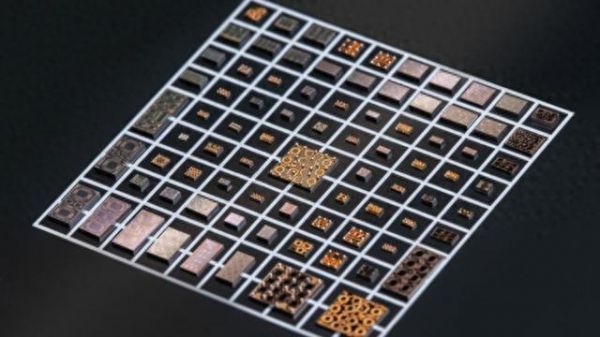 题图说明:基于该项目射频EDA软件研制的系列集成无源器件(IPD)芯片。(白色方格:3毫米见方)
