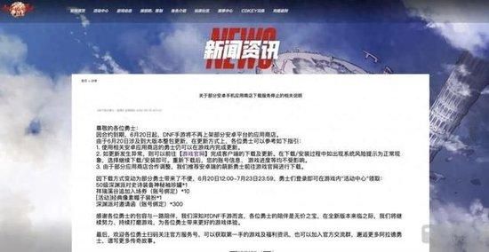 6月19日,《地下城与勇士:起源》运营团队发布了一则公告称,因合约到期,自6月20日起,DNF手游将不再上架部分安卓平台应用商店。