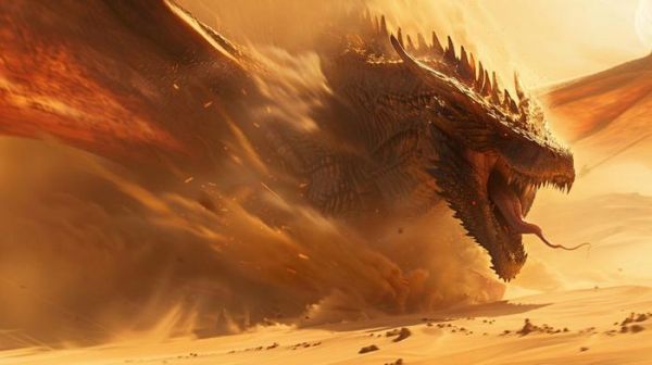 再比如用巨龙图片生成视频,输入“正在捕食的巨龙,飞扬的沙子,奇幻风格的电影”,视频便呈现巨龙昂首展翅掀起漫天黄沙,嘴部开合仿佛在咆哮的生动效果与奇幻场景。通过这种文本与图像意义的紧密联动,可灵将按需定制的视觉叙事提升到了一个新高度。