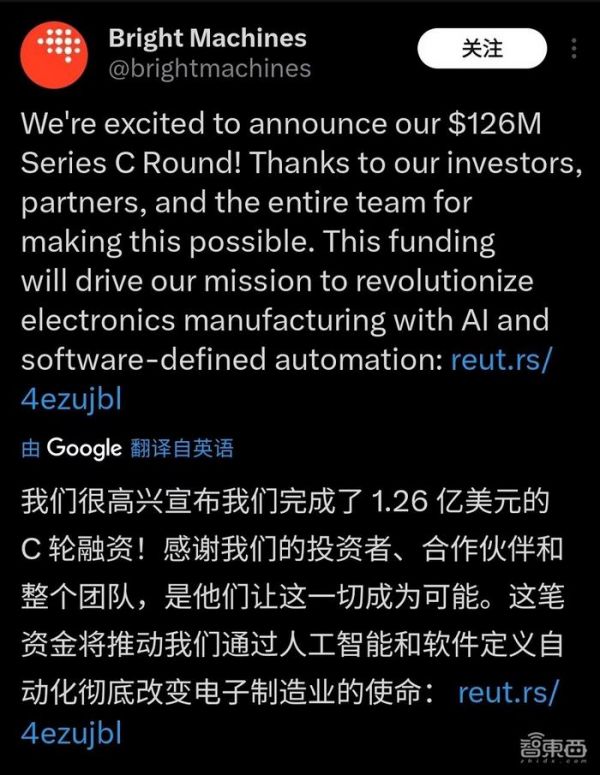 ▲来自Bright Machines推特官网(图源:X)结语:科技巨头注资,Bright Machines资金实力进一步增强