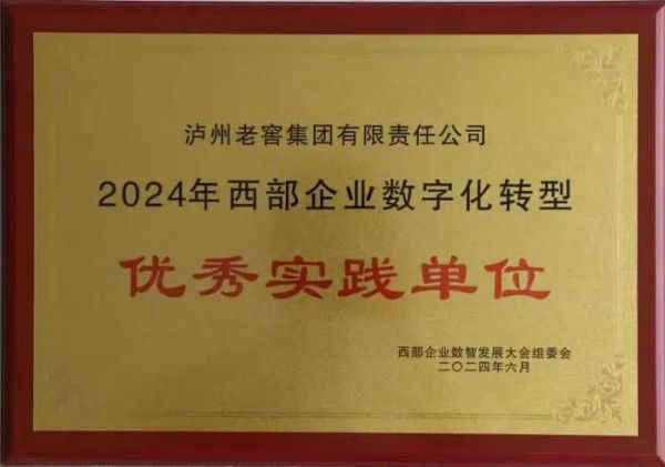 泸州老窖集团有限责任公司荣获2024年西部企业数字化转型优秀实践单位