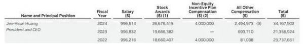 文件显示,英伟达CEO黄仁勋2024财年获得了价值约3400万美元的薪酬方案,这一数据比2023财年高出了60%。