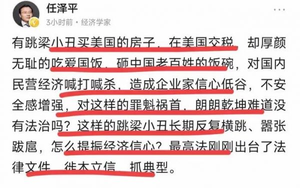其实,任博士这对这些极左进行了严厉的批判,他说,有些跳梁小丑,在美国买小房子,还在美国交税,却跑回来砸中国人的饭碗,终究会被钉在历史的耻辱柱上。是不是啊?要我说,这是耻辱柱的耻辱。