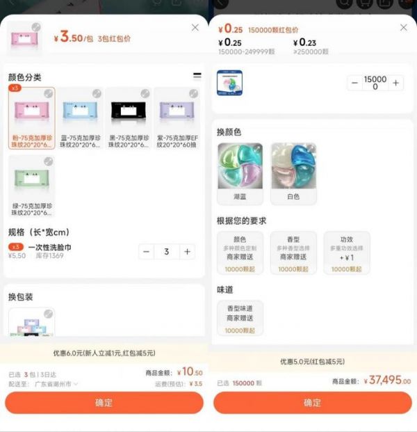 但 PConline 在搜索美腕优选洗衣凝珠和洗脸巾背后工厂后发现,洗衣凝珠在 1688 上的单颗售价为 0.25 元,美腕优选优惠前单颗则为 0.61 元,但前者需要 15 万颗起批;美腕优选上,规格为 76 抽 × 3 包的洗脸巾售价为 39.9 元,其背后工厂咔咔玛在 1688 上差不多规格的 60 抽洗脸巾单包售价仅为 3.5 元。