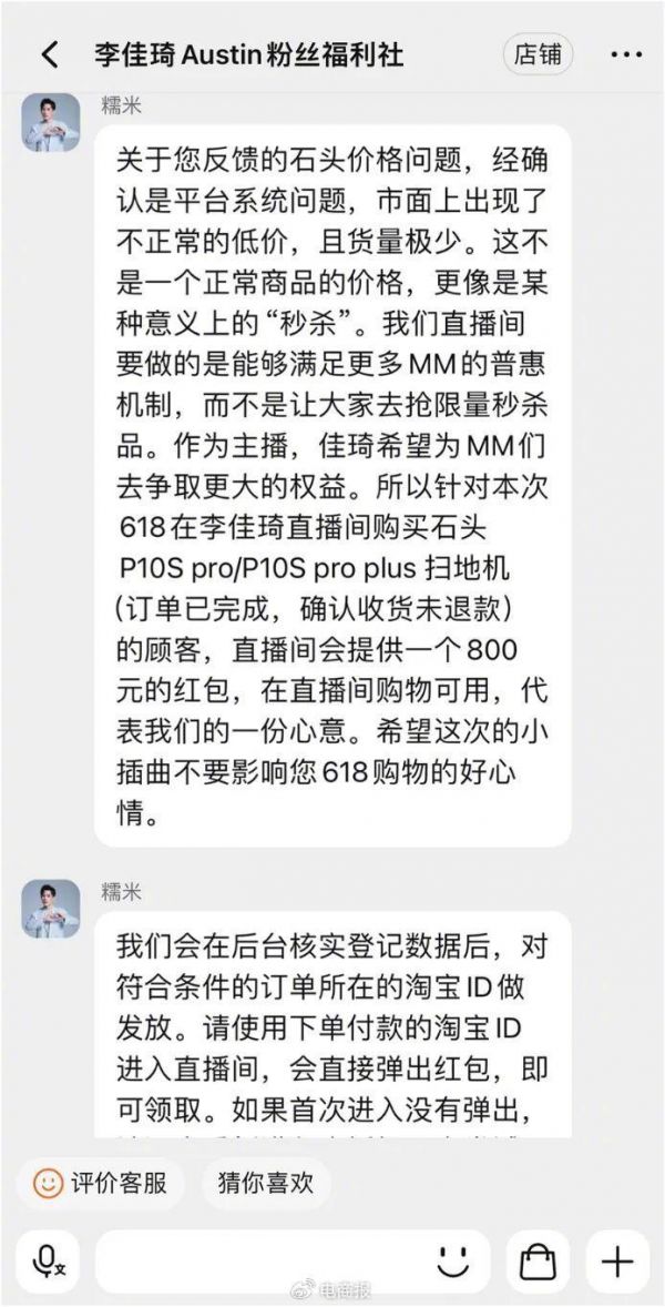 最终,李佳琦直播间给相关消费者补偿了800元无门槛红包,已经算是比较有诚意的解决方案了。