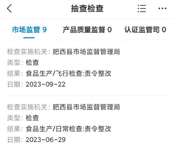 安徽王仁和米线食品有限公司抽检信息 图源:天眼查