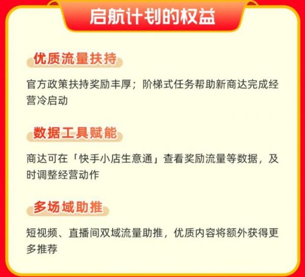 为了鼓励新商家积极参与,快手设定了明确的参与门槛和奖励机制。凡是在快手平台首次经营90天内的新商家,只要符合平台法规及评分标准,就有资格享受冷启动扶持政策。