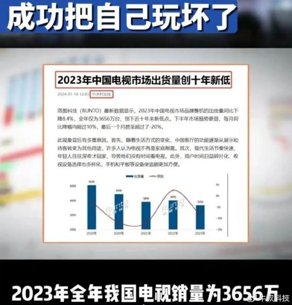 报告称2023我国电视出货量创10年来新低电视已不再是家庭刚需