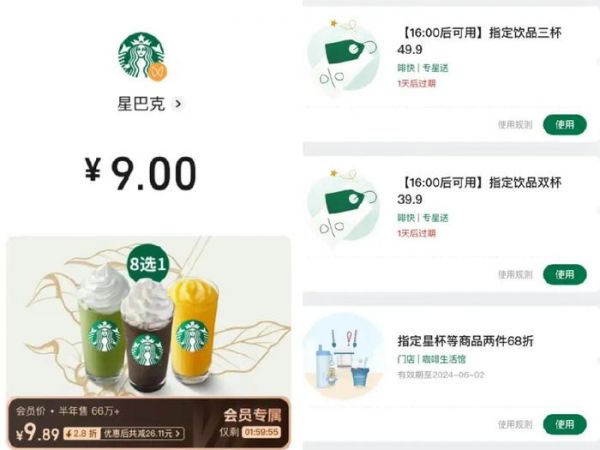 据社交媒体的讨论,2024年以来,星巴克发放优惠券的频率更高了。