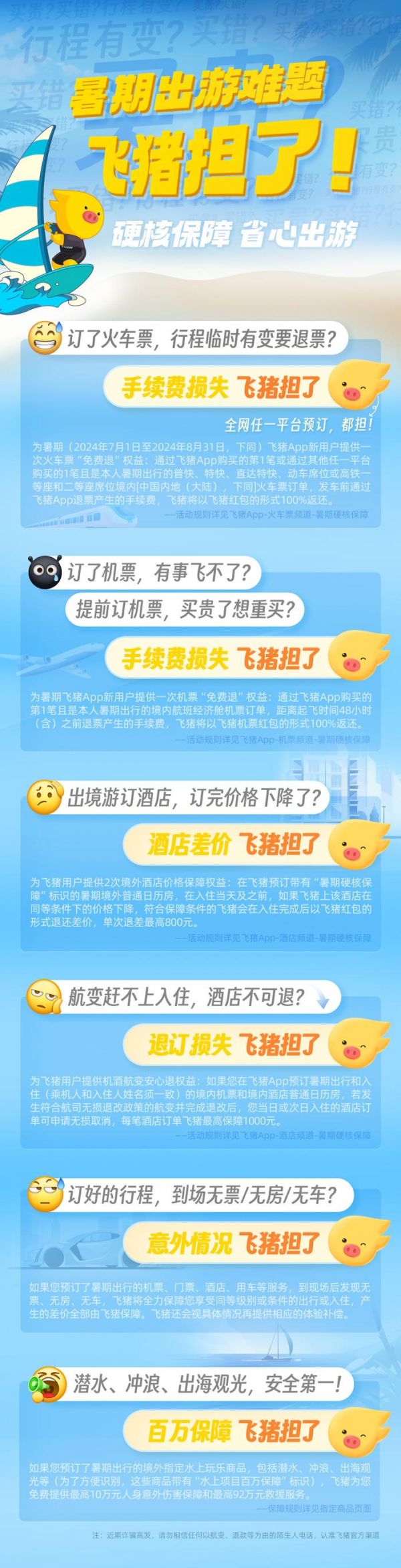 飞猪此次推出的六大保障举措覆盖7月1日至8月31日整个暑期。