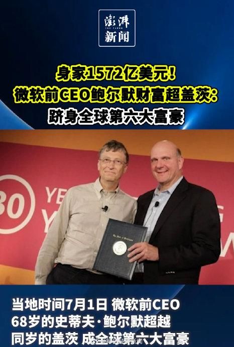 1572亿美元!微软前CEO身家首超盖茨 ,成全球第六大富豪