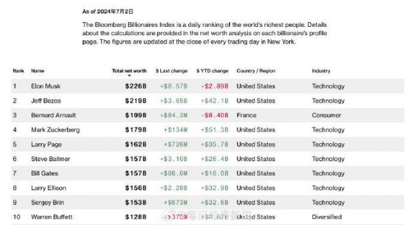 2023年全球最赚钱的10个人马斯克居全球最赚钱富豪榜首