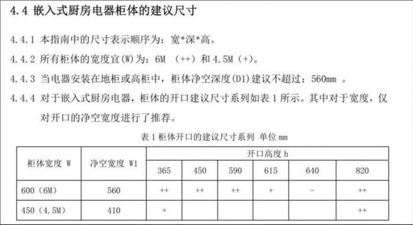 因此在指南中,不仅涉及到嵌入式电器自身的尺寸、安装、电气配置、水路配置的建议,同时还包括了嵌入式厨房电器柜体的建议尺寸、开口高度、宽度等,可以说对于家电行业以及配套的家居行业都做到了有效的指导,同时无论是生产厂家亦或是消费者,都提供了购买、制造的参考。