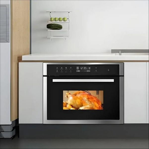 此时出现的嵌入式电烤箱,就很好地平衡了狭小厨房面积和烹饪电器需求之间的平衡。所以嵌入式的设计,更多地可以理解为一种“功能集成”,即为了节省厨房空间,将烤箱、洗碗机或者其他厨房电器集成在灶台或者橱柜中,以此达到节省空间的目的。