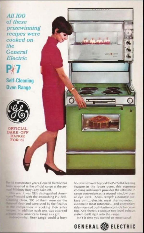关于究竟谁是第一个发明嵌入式电烤箱的品牌,目前仍有争议,一说是由美国通用家电率先推出,同时也有资料指出德国西门子于1957年首先推出,对于谁是“第一”的争论并不是这篇文章讨论的重点,不过从钛媒体APP找到的上世纪60年代的电烤箱广告中,就能看到彼时嵌入式产品的形态。
