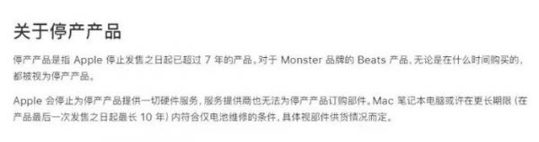 “过时产品”是指苹果停止发售之日起已超过5年但未满7年的产品。这些产品不再获得苹果官方的维修服务。但如果零件尚存,苹果可能会提供最多两年的维修服务。
