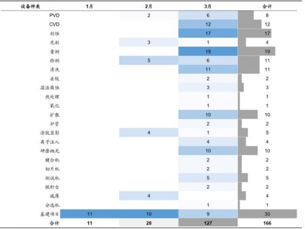 特别是3月,半导体设备招标环比增长显著。