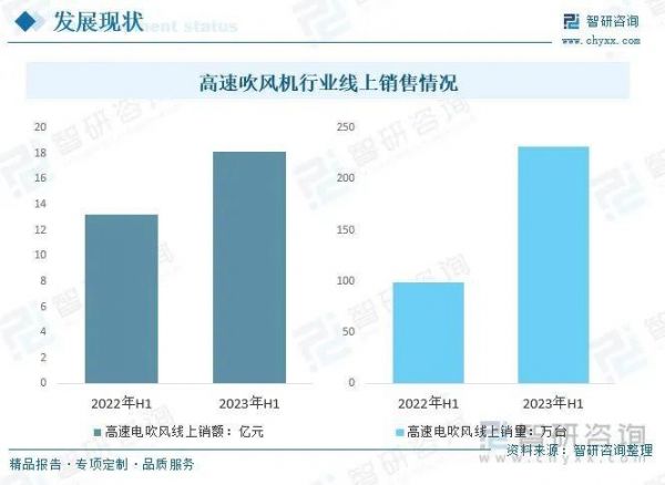 图源:智研咨询 因高速吹风机可以带来差异化的使用体验,该市场蓬勃发展。智研咨询披露的数据显示,2023年上半年,中国高速电吹风线上销售额18.1亿元,同比增长37%;线上销量231.2万台,同比增长134%。