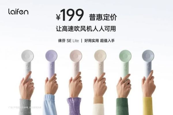 图源:徕芬 为了在内卷竞争加剧的背景下,扩大市场影响力,2024年2月,徕芬推出了SE Lite版高速吹风机,内置10万转/分钟自研无刷电机、风速19m/s,首发价仅199元。事实证明,极致的低价确实是俘获消费者的利器。目前,在京东平台,徕芬SE Lite高速吹风机的评论量超10万。