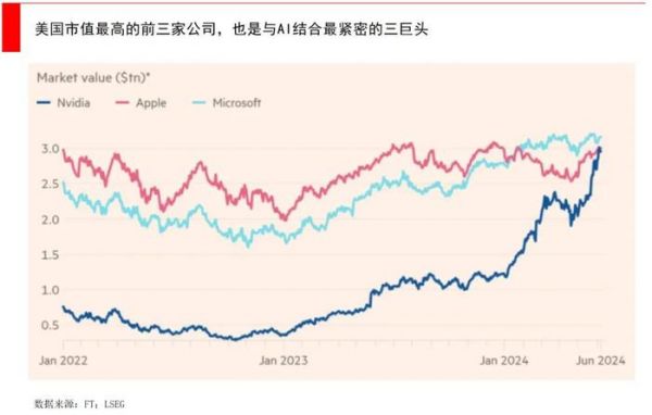 如今,全球市值最高的科技三巨头(苹果、微软、英伟达),都是AI的积极参与者,很多投资者也都在盯着他们的财报,希望能从中发现一些AI落地的迹象。