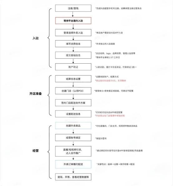 从商家入驻流程中不难发现,抖音电商商家端与外卖服务端的整合已初见成效,为在“抖音来客”注册的商家提供了极大的便利,无需重复注册“抖店”,即可轻松接入。