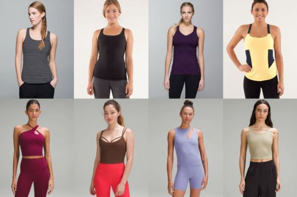 近十年来,lululemon 产品定位趋向时尚化、休闲化。只看运动背心这个品类就能看出明显的变化:2010 年代初的新品多是基础的工字型,配上 “我只想跑步”“超越极限” 这类名字。2020 年代的新品则加上了不规则肩带、局部镂空、细吊带等各式没有任何功能的设计,一款名为 “标志魅力” 的背心甚至在两条背带之外又做了一条纤细的一字肩带,挂上 logo 吊坠。