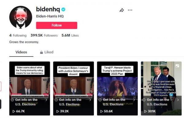 搞笑的是,拜登自己抢先一步,在今年2月注册了TikTok,视频发了一大堆,但粉丝只有不到40万。